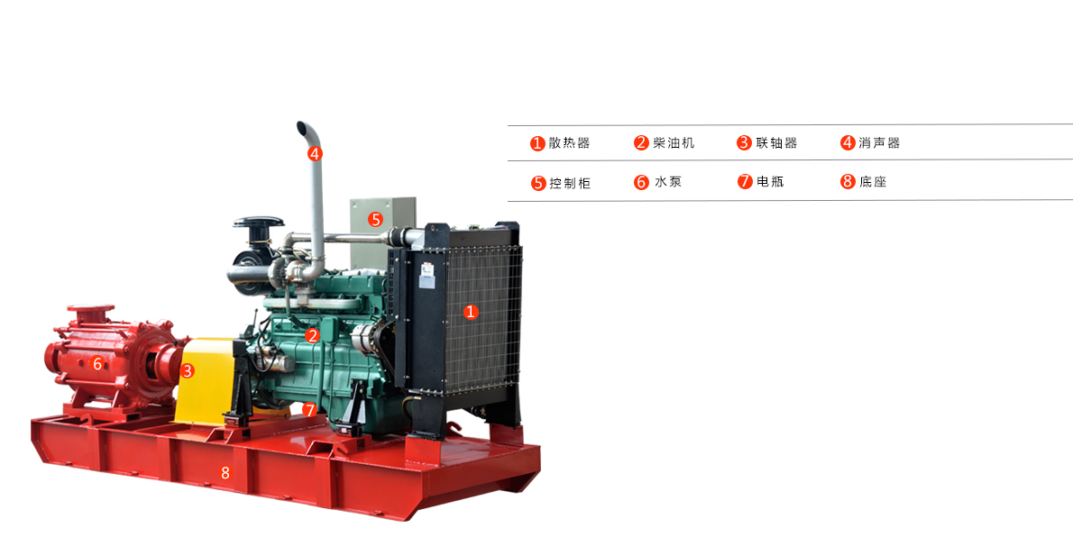 5.直連式:360kw以下柴油水泵機組采用國內(nèi)*的柴油機與水泵通過彈性聯(lián)軸節(jié)直接連接技術(shù),減少了故障點,并使機組的起動時間大大縮短,增加了機組的可靠性和應(yīng)急性能;