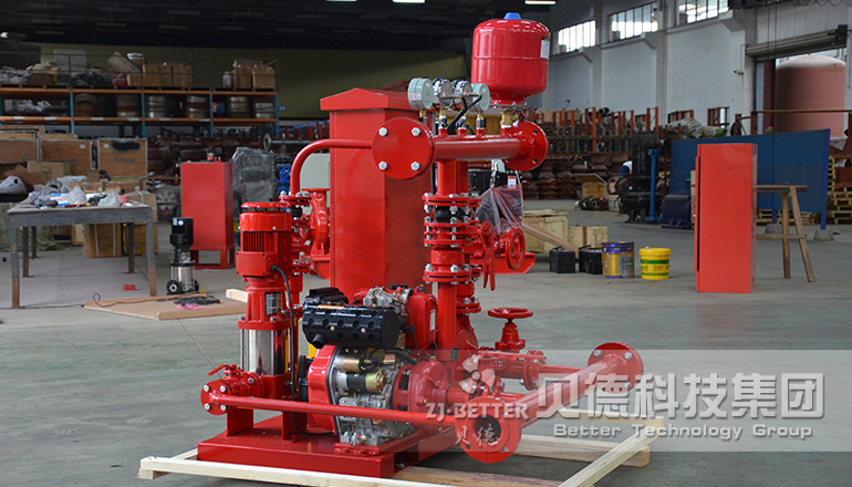 柴油機(jī)泵作為EDJ消防泵組的備用泵,可采用端吸泵、臥式中開(kāi)泵、立式渦輪泵等,流量和揚(yáng)程應(yīng)與電動(dòng)泵保持一致。否則,柴油機(jī)總成配置必須符合NFPA20標(biāo)準(zhǔn),如足夠的空間油箱、發(fā)動(dòng)機(jī)冷卻系統(tǒng)和控制系統(tǒng)。
