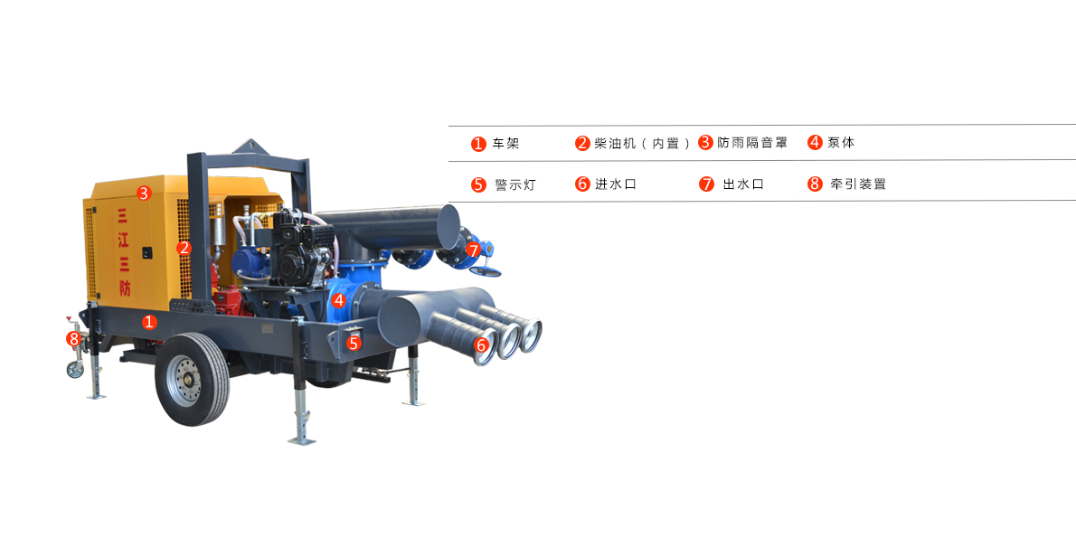 防汛排澇移動泵車采用一臺柴油發(fā)動機同軸拖動一臺水泵的一體化設(shè)備,同時安裝有兩輪或者四輪的實心輪胎以及澳洲標準的牽引裝備,收到險情求助信息后就能快速響應(yīng),將泵車連接至汽車上,快速到達受災(zāi)現(xiàn)場開始排水作業(yè),還能有效解決搶險救災(zāi)活動中經(jīng)常遇到的進入困難、作業(yè)面狹窄、多種作業(yè)并行等多種難題。