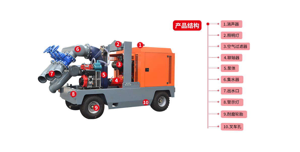移動(dòng)式柴油排水泵車集混流泵和無堵塞排污于一體,采用柴油機(jī)驅(qū)動(dòng)軸向回流外混式,并通過泵體、葉輪流道的獨(dú)特設(shè)計(jì),使用時(shí)不需要安裝底閥和灌引水。主要用于農(nóng)田灌溉、農(nóng)村灌溉、農(nóng)業(yè)灌溉、排水泵站、雨水泵泵站、排灌排澇、防洪防汛、防洪排澇、抗旱減災(zāi)等。
